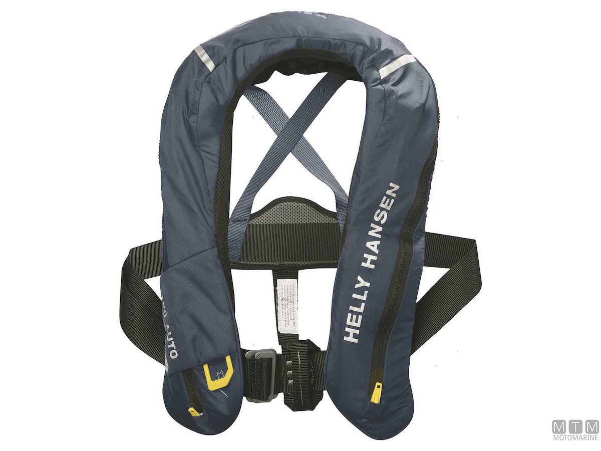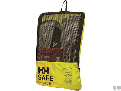 Giubbotto di salvataggio gonfiabile Helly Hansen Inshore 170 • Attivazione Automatica - Certificazione EN ISO 12402-3 • Classe di Galleggiamento: 150N • Galleggiabilità reale: 165N • Imbrago: Certificato EN ISO 12401 con fibbia a sgancio rapido, attacco per nastro di sicurezza e cinghia inguinale • Taglia: Unica per adulti >40 kg • Circonferenza Torace: 80/135 cm • Navigazione: Diporto entro e oltre 6 miglia dalla costa