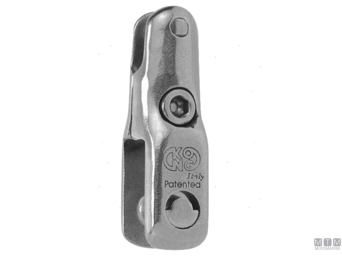 Giunto ancora fisso in Acciaio Inox AISI 316 di alta qualità. Scorre senza blocchi nel musone salpa-ancora, posiziona correttamente l'ancora ed evita il torcersi della catena.