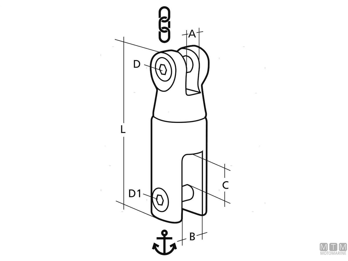 GIUNTO ANCORA GIREVOLE PER CATENA D12/14MM ACCIAIO INOX 316