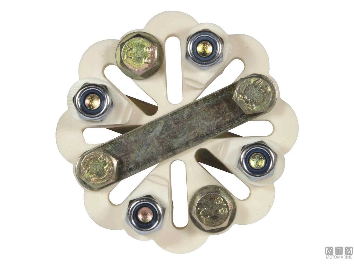 Giunto elastico R&D per accoppiamento tra asse elica e invertitore Yanmar.
