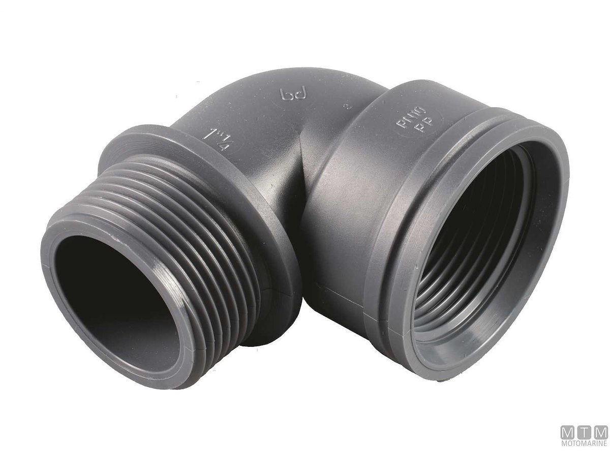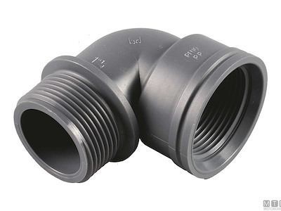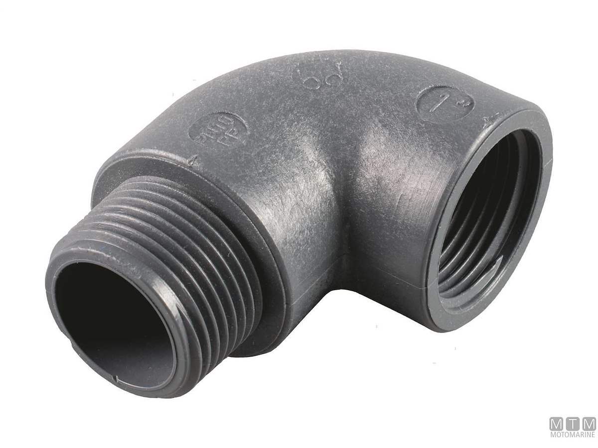 Gomito F-M in Polipropilene composito caricato con fibre di vetro. Tenuta superiore del filetto e della pressione, resistente all'abrasione, all'usura, esente da corrosione chimica e galvanica. Idoneo per passaggio acqua dolce a norma CE 10/2011 e DM174/2004. Pressione di esercizio 10 bar a max 100°C.