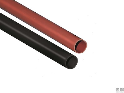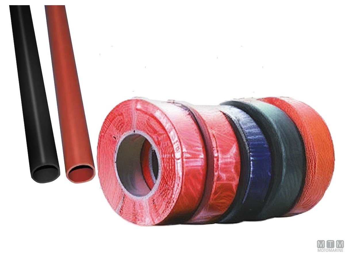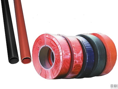 Guaina termorestringente classica con rapporto di restringimento minimo. Resistente fino a 105°C, si vende in rotoli da 200 metri.