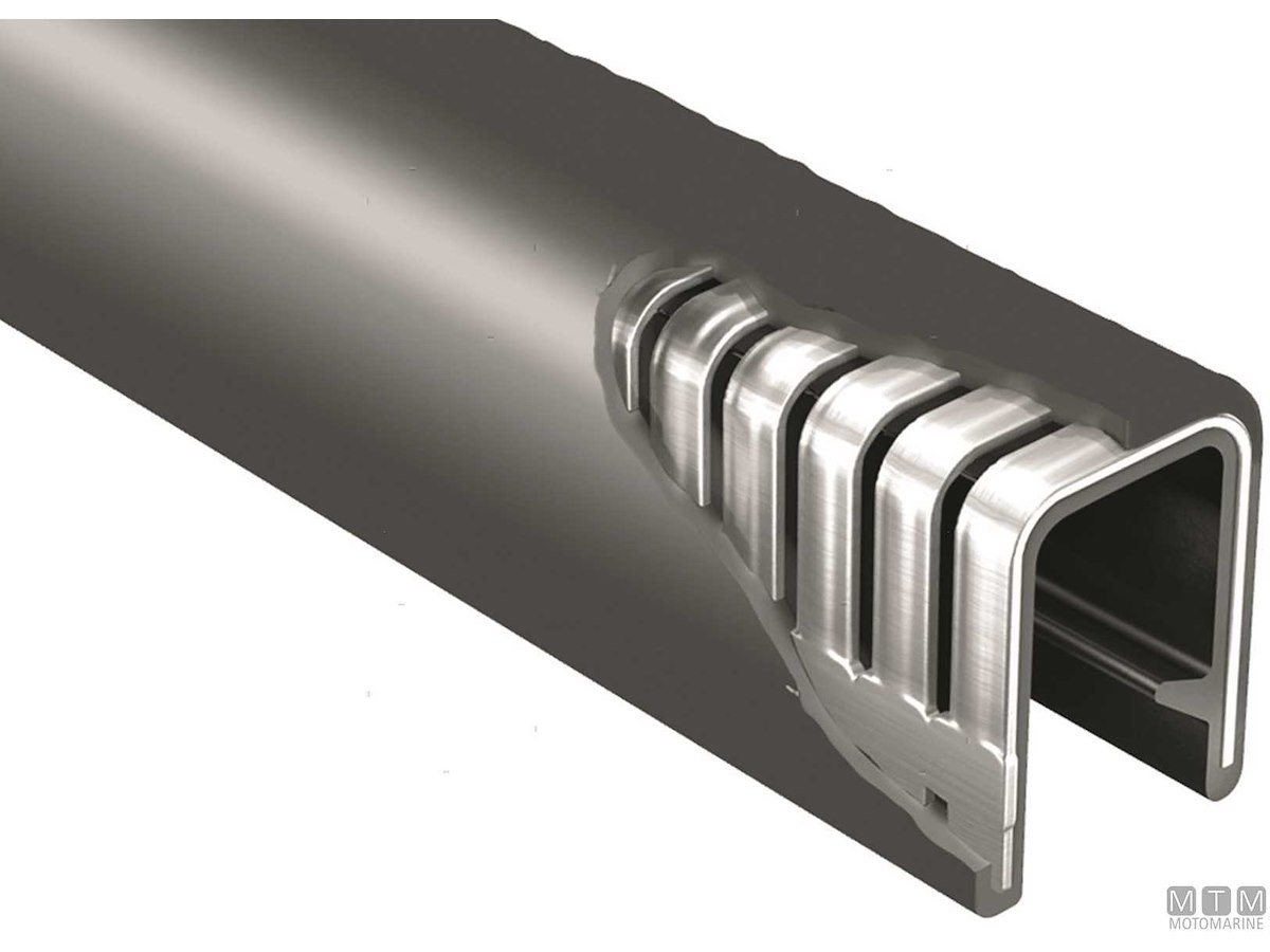 Guarnizione Trim-Lok a tenuta stagna specifica per osteriggi, boccaporti e portelli. Composta da un anello in gomma EPDM espansa e profilo in PVC. Si monta facilmente grazie alla struttura con anima in Alluminio segmentato che si adatta alla forma del bordo da coprire. La linguetta di blocco garantisce una tenuta perfetta anche senza adesivo. Confezione da 15 metri.