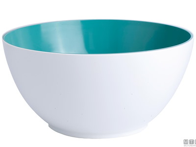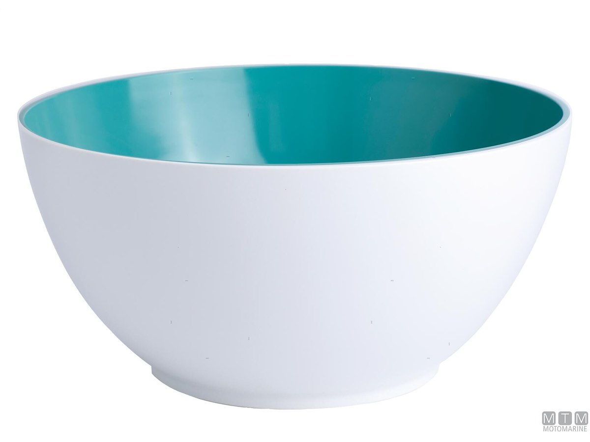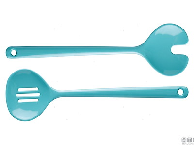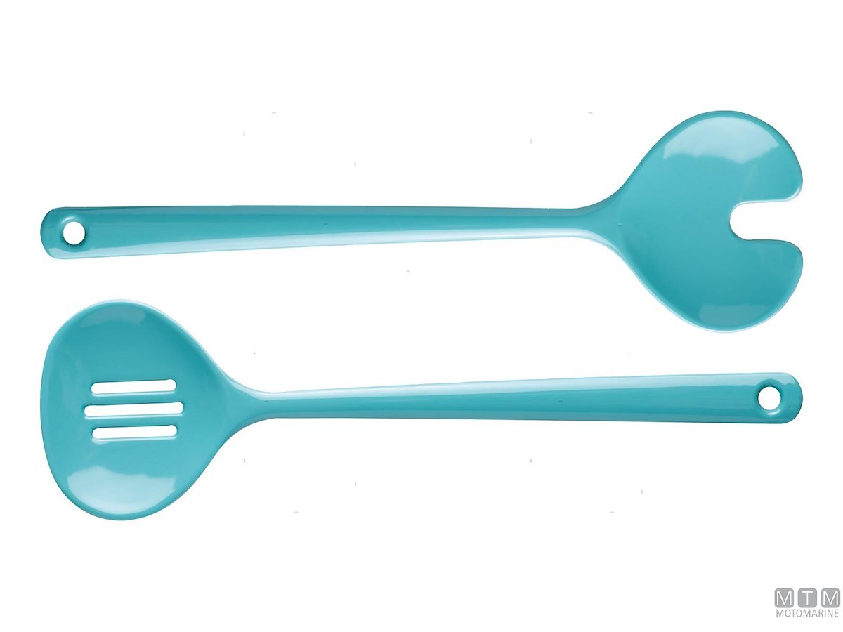 Insalatiera con posate con decoro Aqua. In Melamina garantita 100% per uso alimentare. Lavabile in lavastoviglie, infrangibile e anti-macchia.