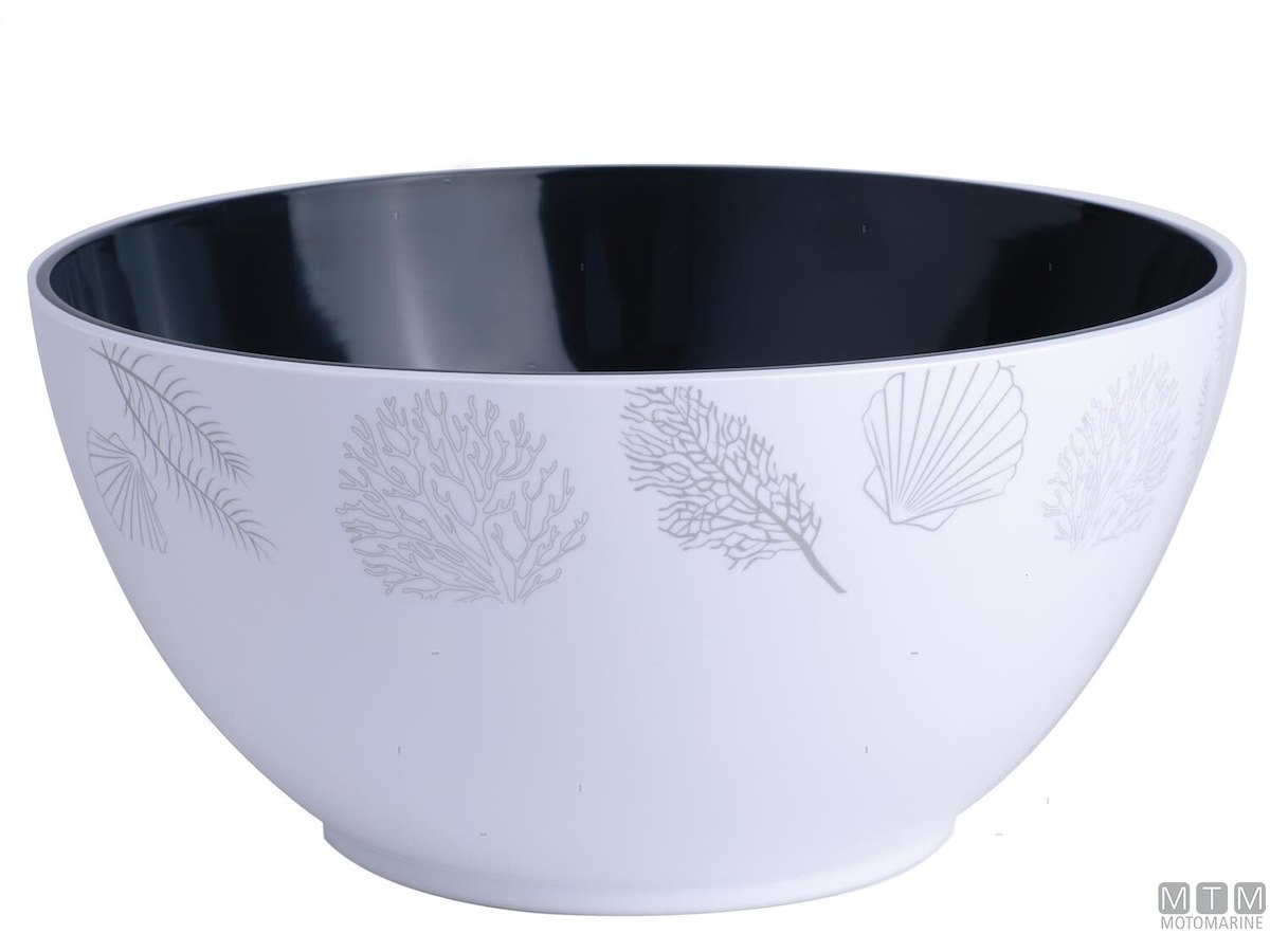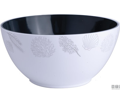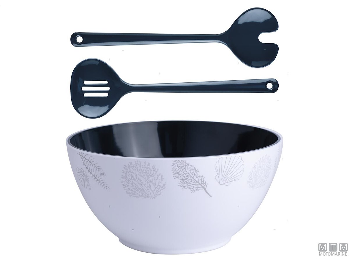Insalatiera con posate con decoro Living. In Melamina garantita 100% per uso alimentare. Lavabile in lavastoviglie, infrangibile e anti-macchia.