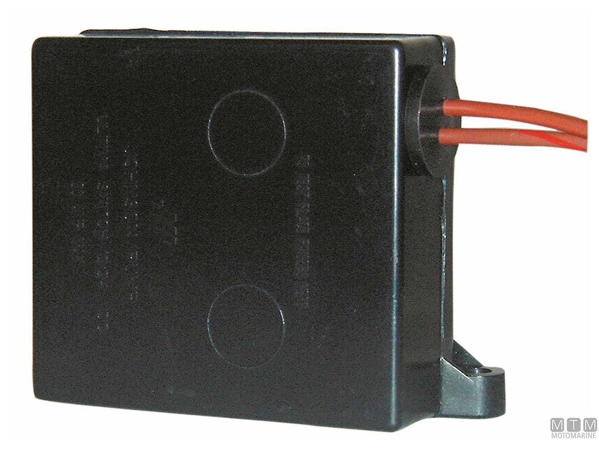 Interruttore elettronico universale Johnson per pompe di sentina 12/24V. Senza usura, privo di parti meccaniche in movimento, impermeabile. Dim: 85 x 67 x 29 mm
