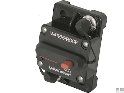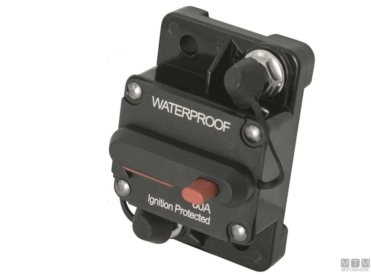 Interruttore magnetotermico con montaggio a superficie per impiego nautico. Doppia funzione di interruttore e di protezione termica. Impermeabile IP67 non scarica scintille e può essere utilizzato su imbarcazioni con motori a benzina. Perni 6,3 mm.