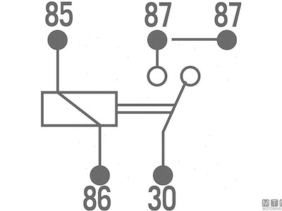 Interruttore elettrico a relè che apre o chiude due circuiti in contemporanea (87/87A).