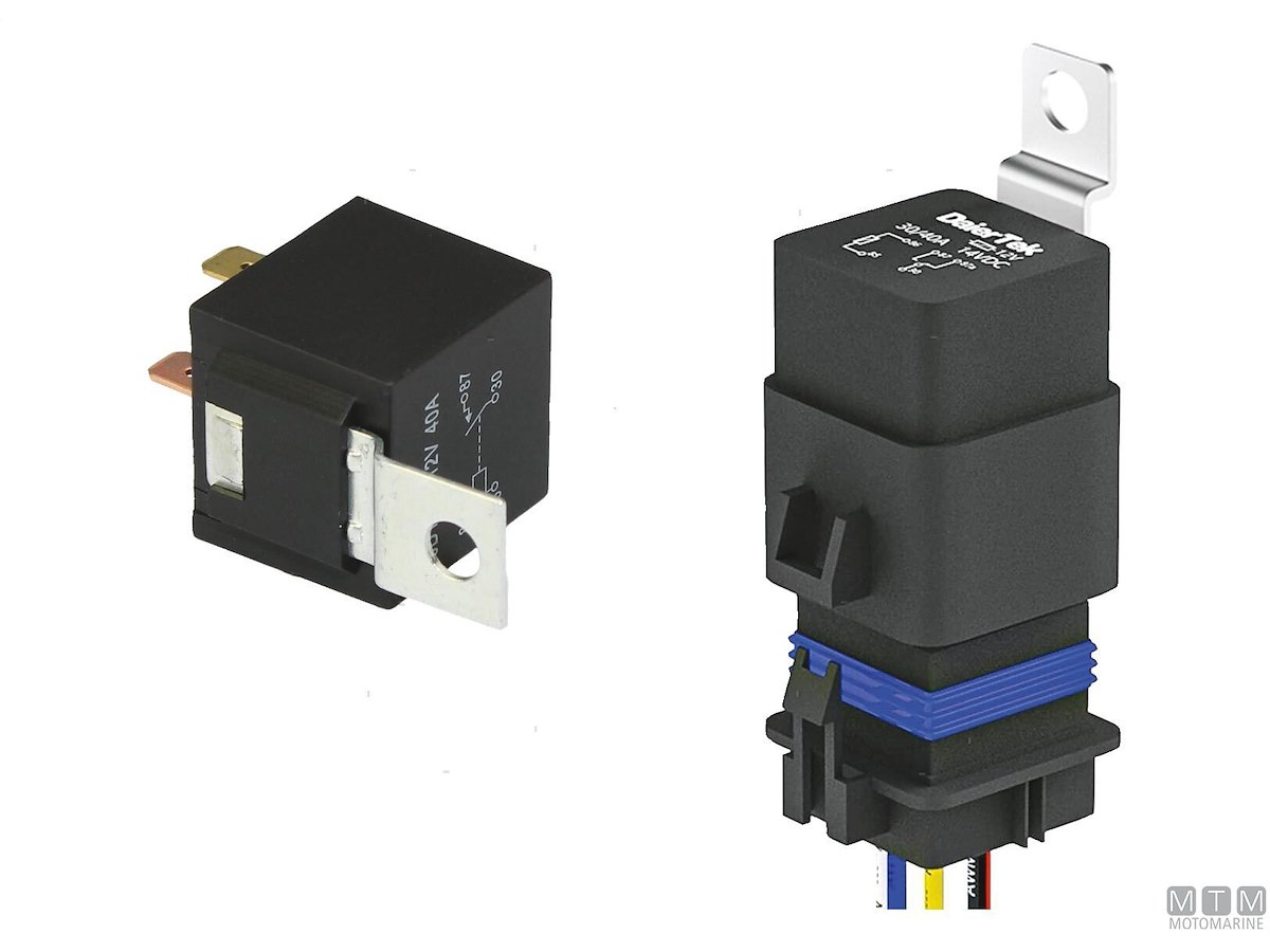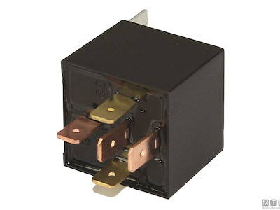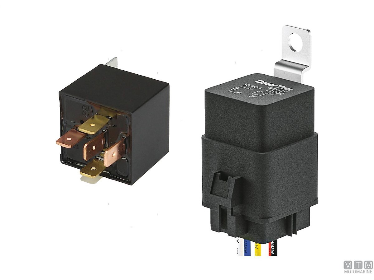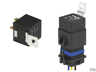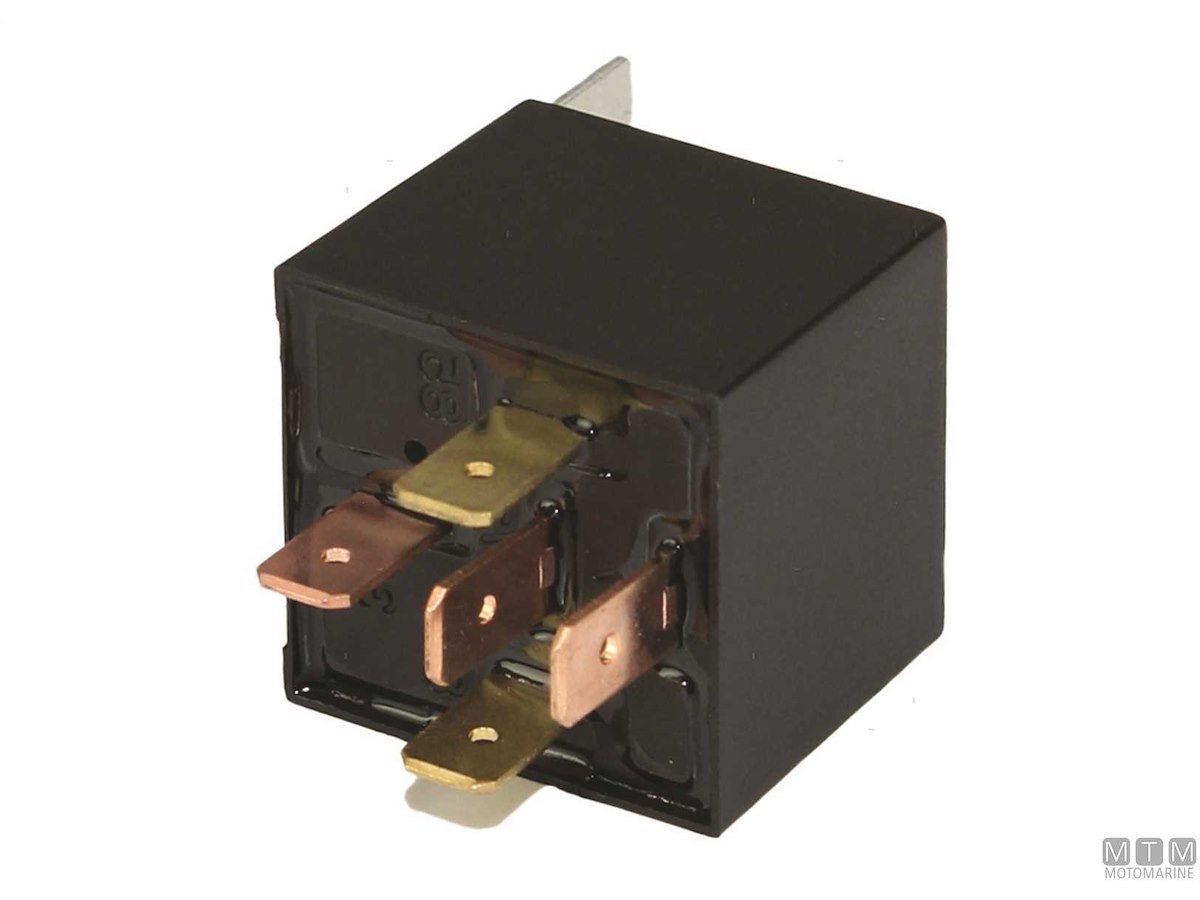 Interruttore elettrico a relè tipo SPDT a 5 terminali che commuta il contatto tra due circuiti (87-87A). Fornito in versione standard oppure con alloggio socket pre-cablato.