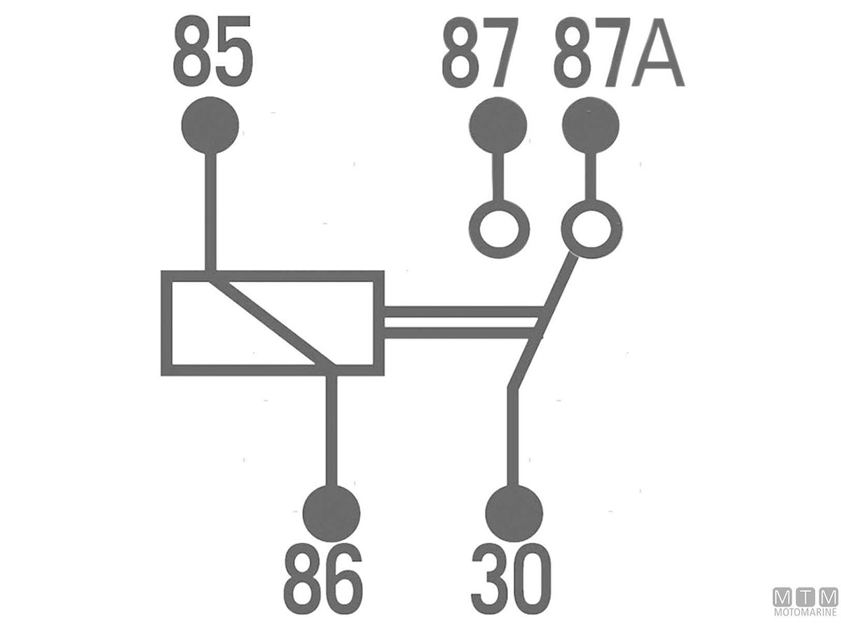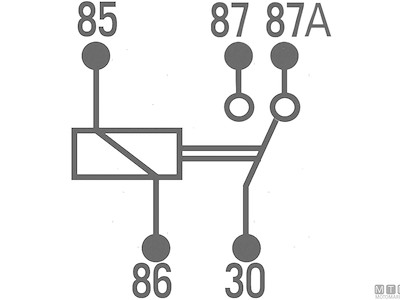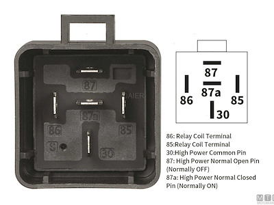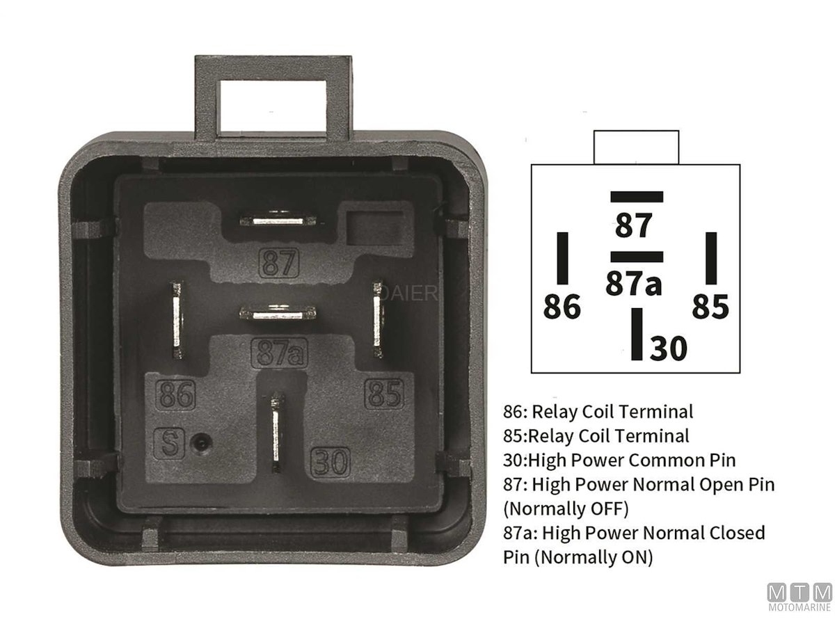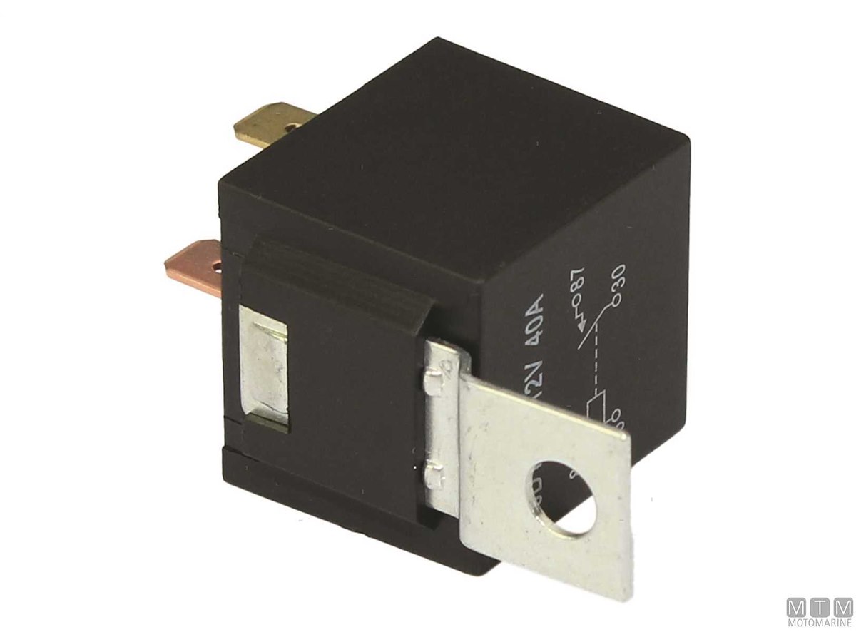 Interruttore elettrico a relè tipo SPDT a 5 terminali che commuta il contatto tra due circuiti (87-87A). Fornito in versione standard oppure con alloggio socket pre-cablato.