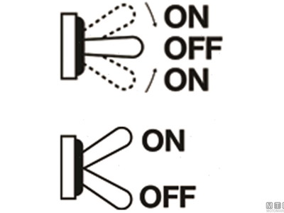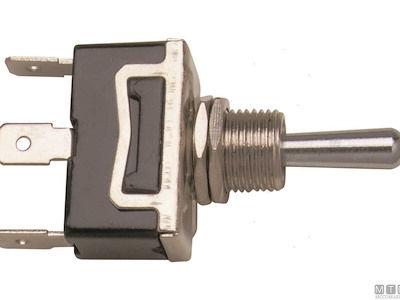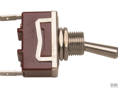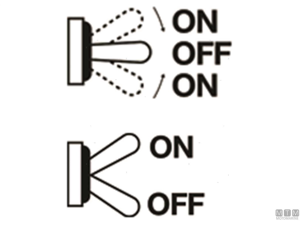 Interruttori a levetta con corpo in Resina e leva in Ottone. On tra parentesi (On) indica una posizione momentanea.