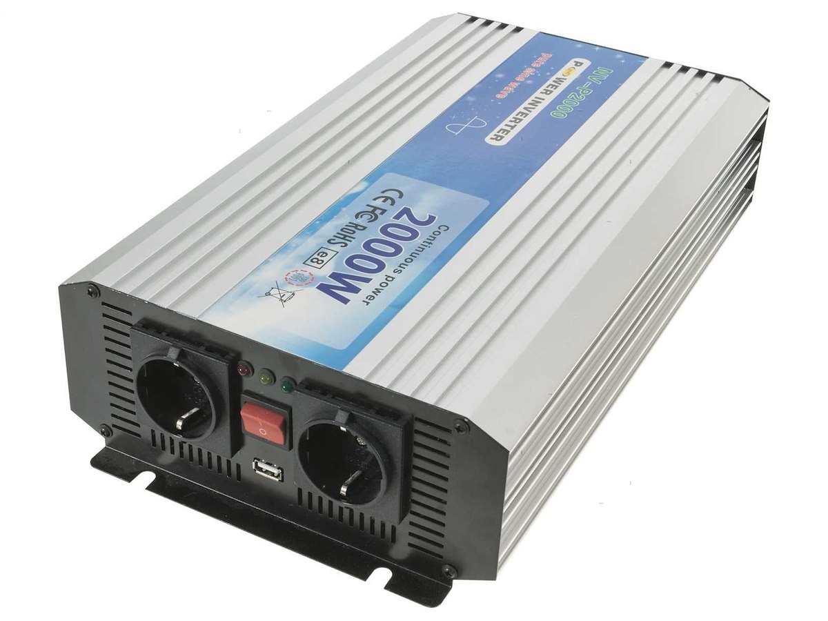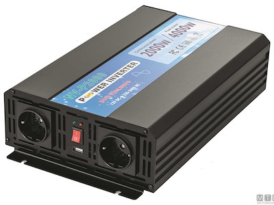 Cod.: 2014321 Tipo: NVP-2000/24 Potenza W: 2000 Entrata V: 24 Uscita V: 230 Dim mm: 285 x 166 x 440 Peso Kg: 6,00