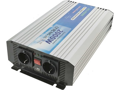 Inverter ES100 Power ad alta efficienza a onda sinusoidale pura per convertire la corrente continua 12/24V delle batterie di bordo in corrente alternata 220V. Efficienza di conversione pari al 90% con distorsione armonica inferiore al 3%. Ideali per alimentare dispositivi elettrici ed elettronici sensibili agli sbalzi di tensione. Il valore indicato in potenza W è continuo.
