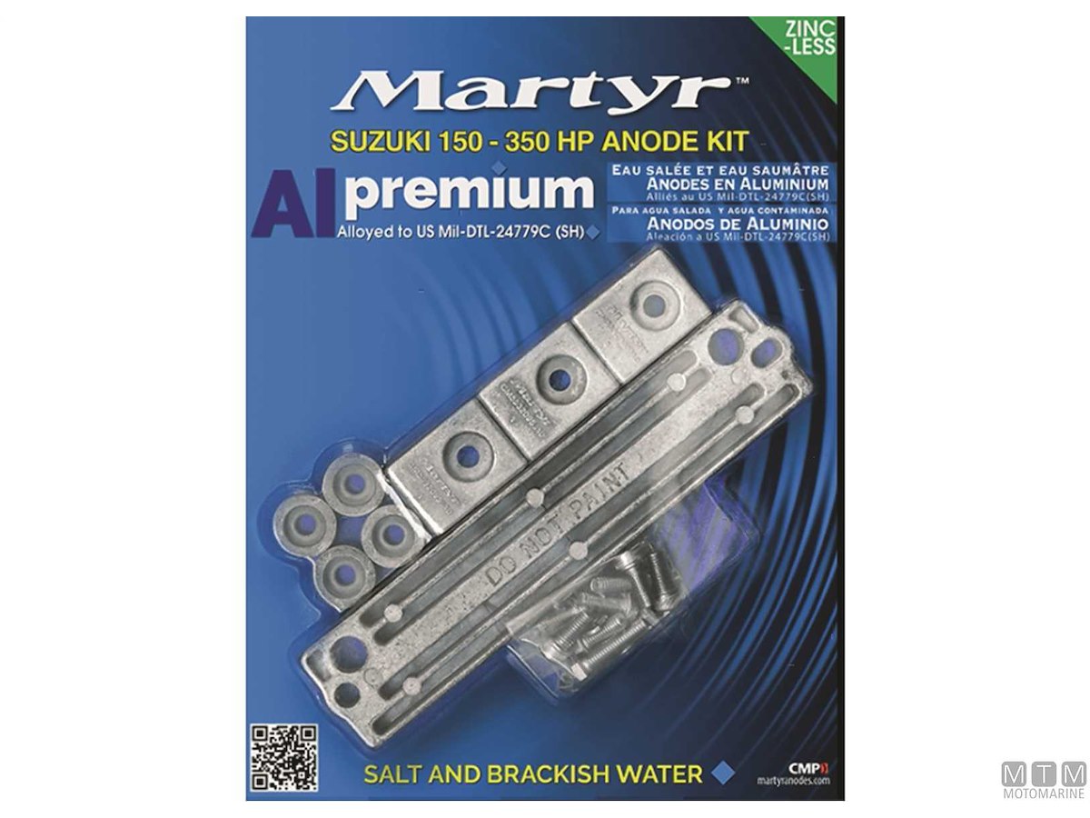 Kit Anodi Martyr Suzuki 150-350 HP in lega di Alluminio M2.Pesano il 50% in meno rispetto ai tradizionali anodi di zinco assicurando pari protezione.Il kit contiene: 1 x 55320-949003 x 55320-953108 x 55321-87J00