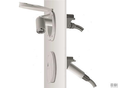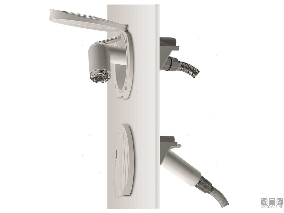 Composto da Box in Abs Bianco o Cromato, per montaggio a incasso sia verticale che orizzontale e doccetta Jara in ABS bianco.