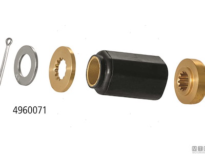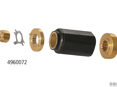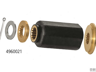 Kit parastrappi per eliche in Acciaio Inox con elementi in Bronzo e gomma con durezza shore in mescola calibrata per proteggere l'elica da torsioni anomale e urti.