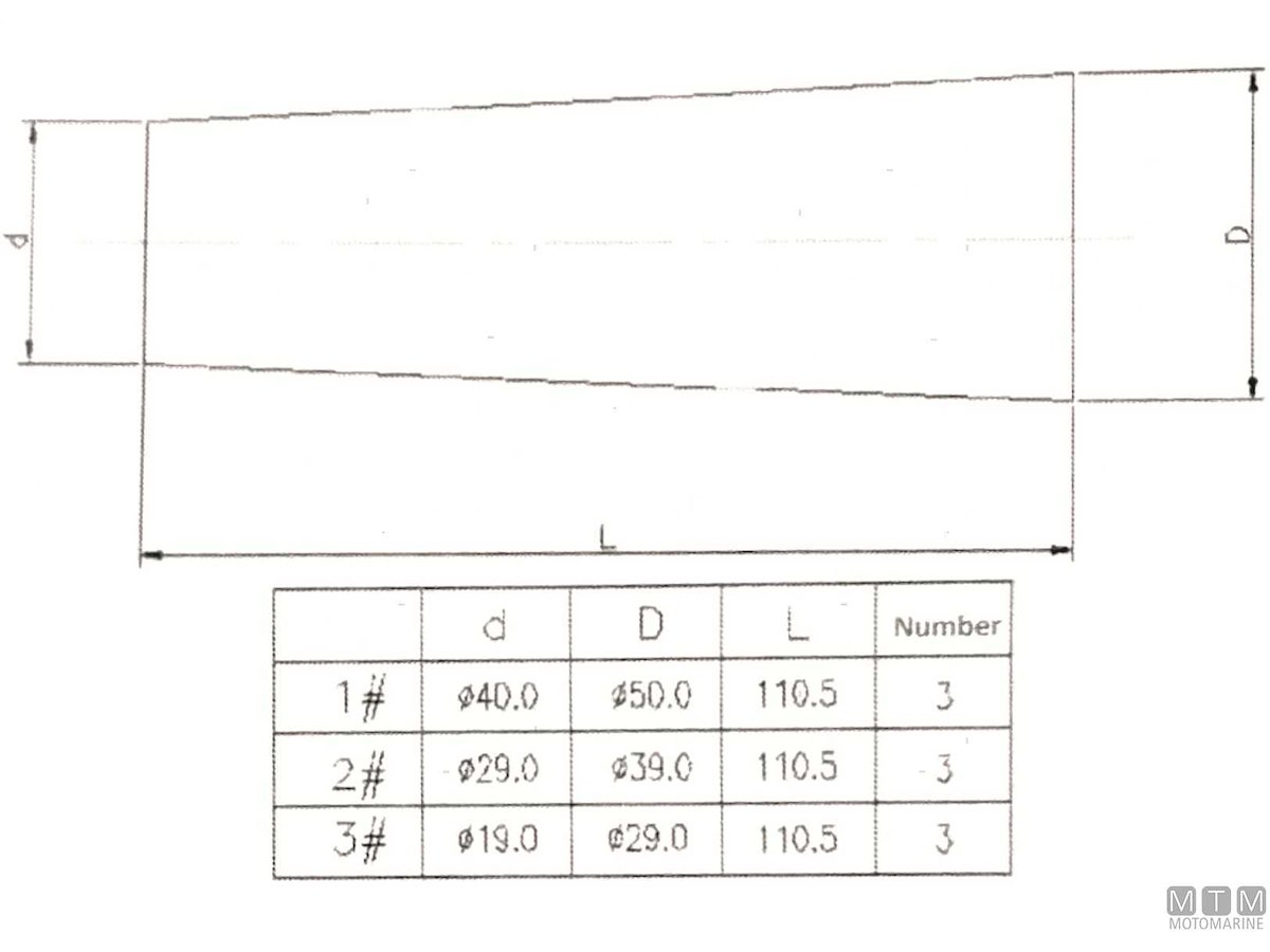 Serie di 9 tappi conici in legno per falle da 19 a 50 mm di diametro. Cod.: 3025068