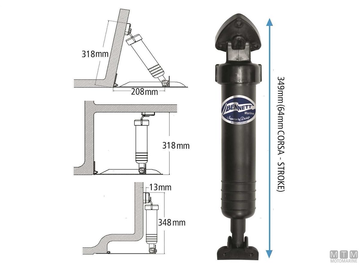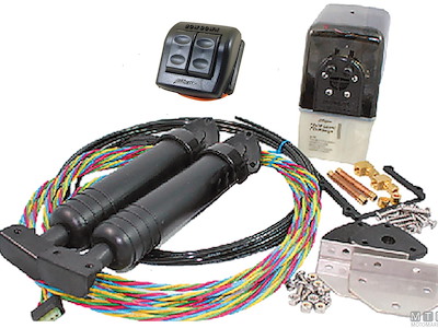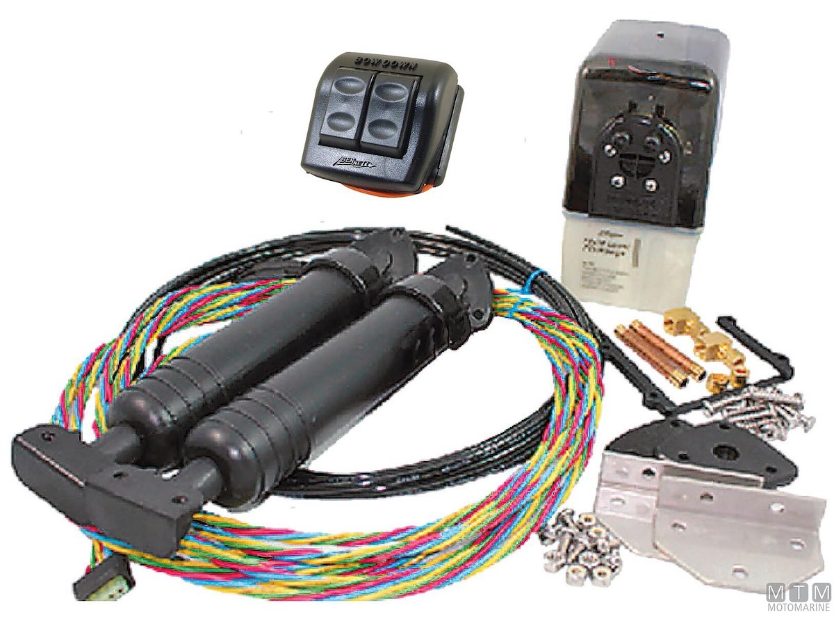 Kit Trim elettroidraulico Bennett completo di: due pistoni standard, tubazioni con raccordi, centralina idraulica, treccia elettrica e pannello comando standard a due interruttori. Le pale flaps vanno ordinate a parte in base alla lunghezza indicativa dell'imbarcazione.