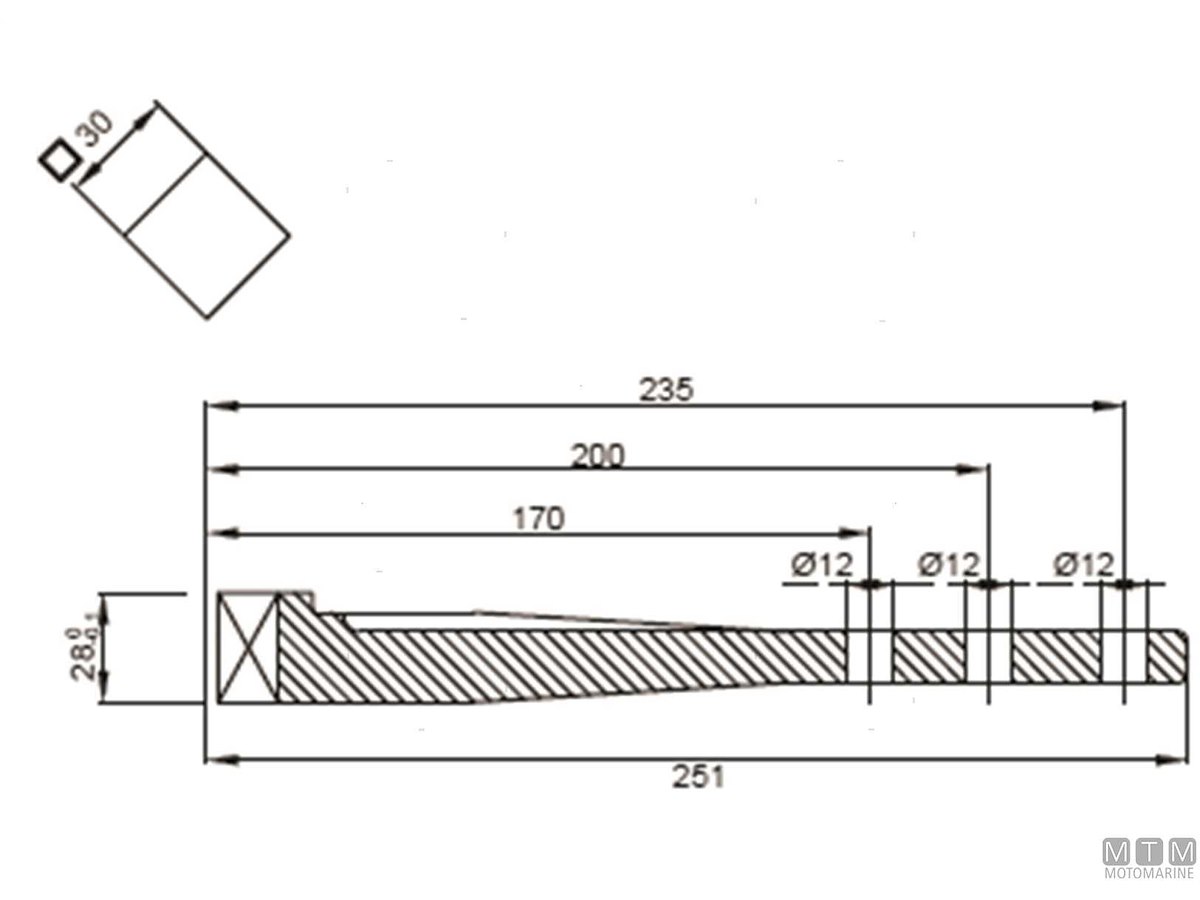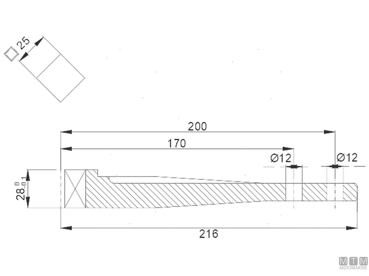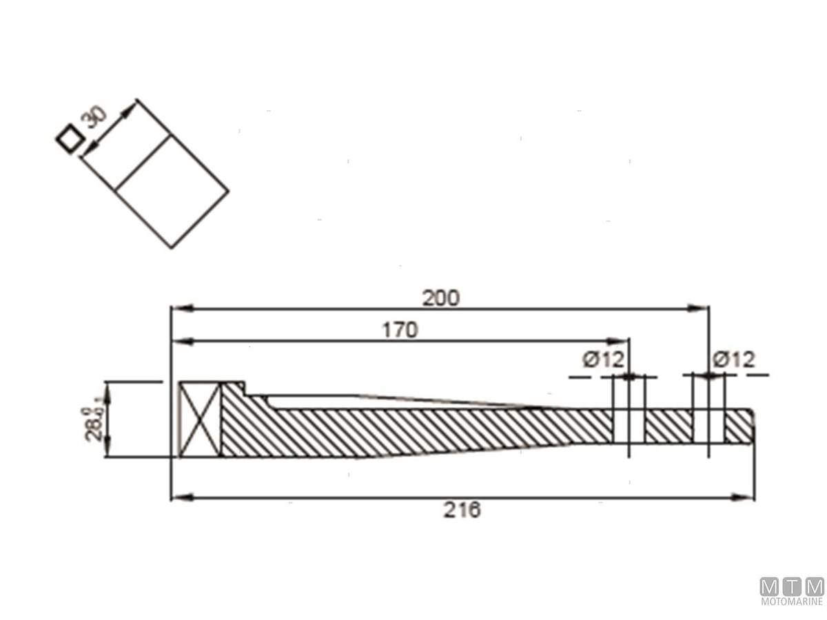 Leva ricambio per timoni Tor-Marine. La leva standard viene fornita di serie su tutti i timoni, la leva lunga è opzionale.