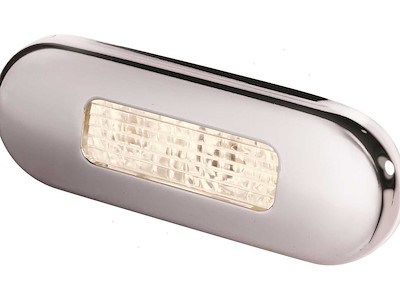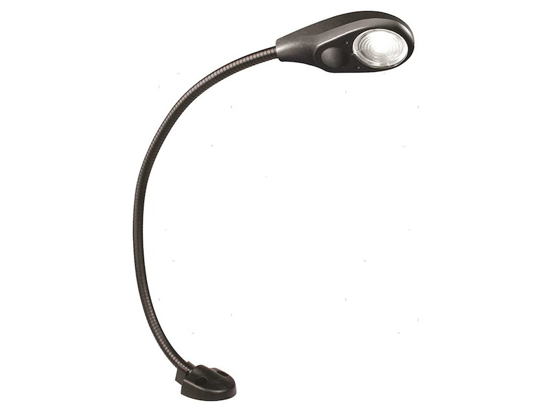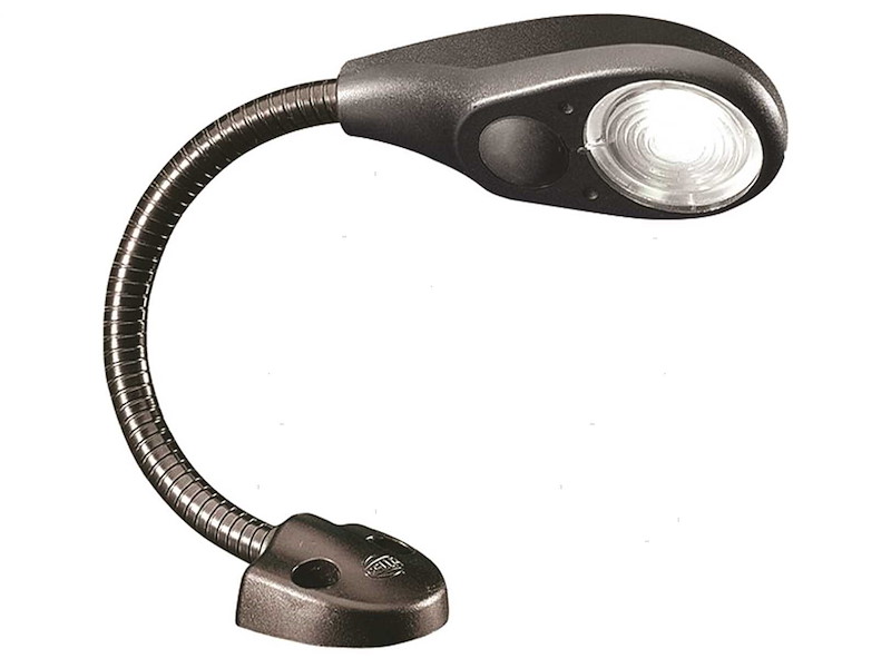 Luce da carteggio e lettura LED con corpo in polimero antiurto resistente UV e frusta in Acciaio Brunito. Montaggio con base a superficie oppure a parete. Alimentazione multivolt 9-31V con 2W di consumo a luce bianca naturale 4000 K°. Completa con 12 cm di cavo marino.