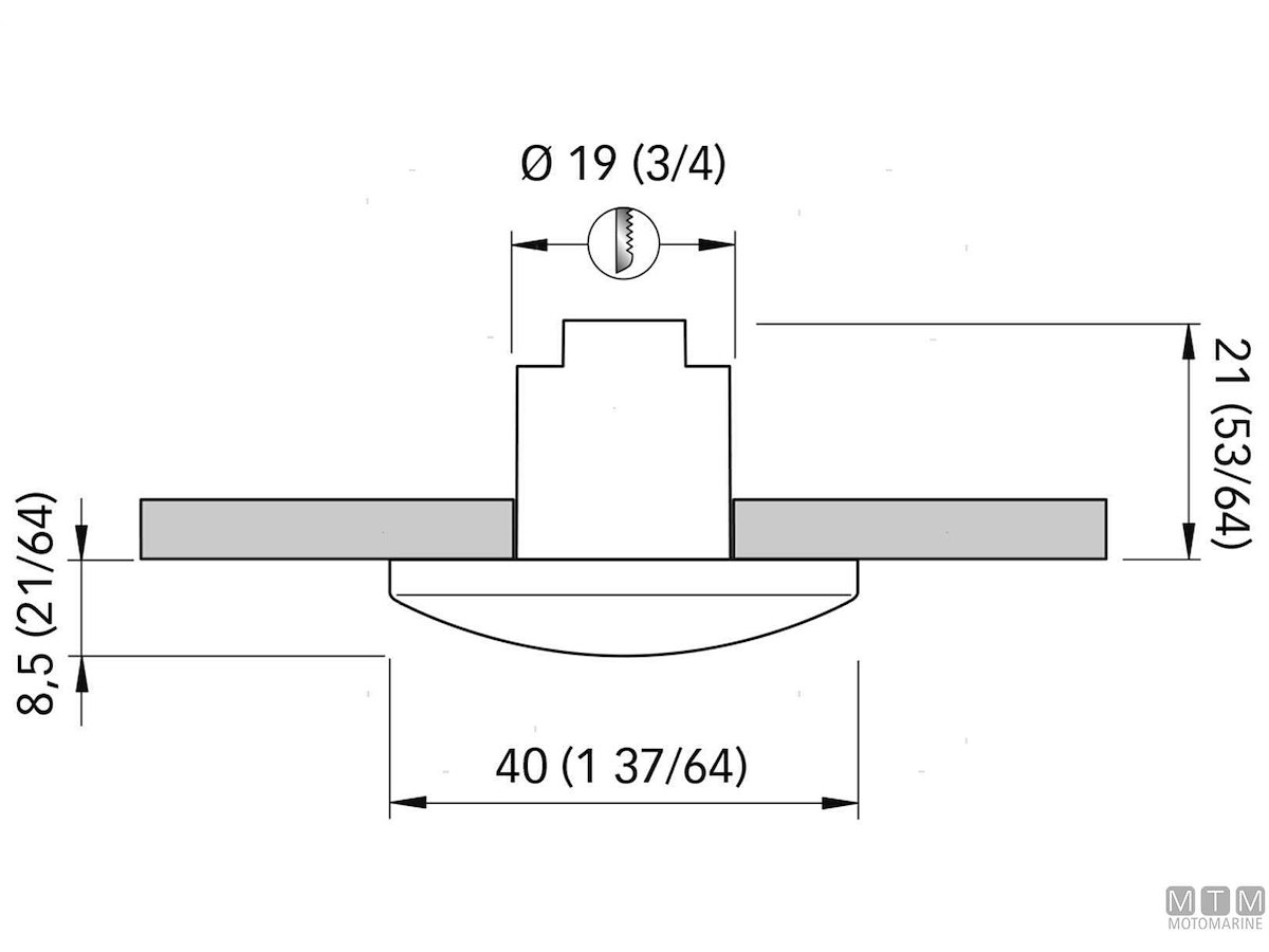 Luce di cortesia LED 0,24W IP65 per interni ed esterni con corpo in Tecnopolimero stabilizzato UV. Montaggio ad incasso con viti. Voltaggio universale 9-32V con LED protetto da picchi di voltaggio.