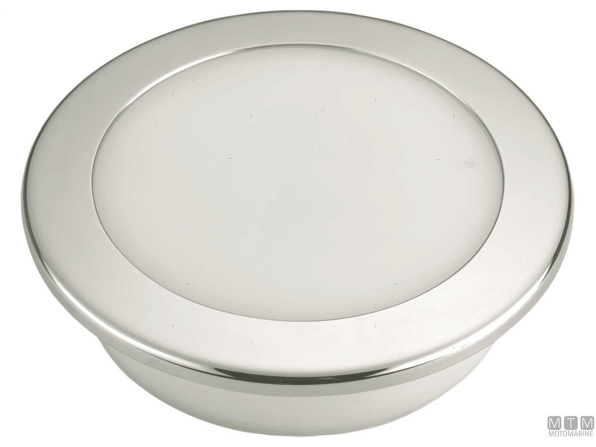 Plafoniera LED 12V dimmerabile impermeabile IP67 con cornice in Acciaio Inox.