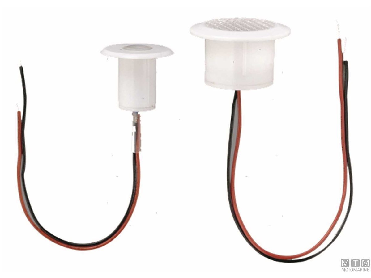 Luci di cortesia LED 12V a incasso con corpo in plastica impermeabile IP66. Luce bianca naturale 4000°K, consumo 0.24W/1.4W