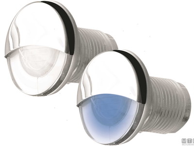 Luci di cortesia LED 12V impermeabile IP68 a incasso in Tecnopolimero con copertura in Acciaio Inox. Luce bianca 6300°K oppure blu, consumo 0.4W