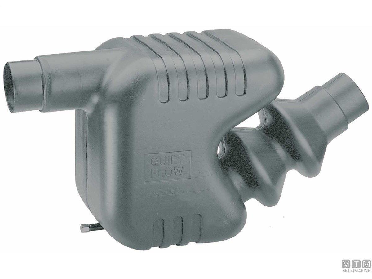 Marmitta silenziata per motori diesel. Impedisce all'acqua di rifluire lungo la linea di scarico verso il motore quando viene spento.Capacità: 33 litri.