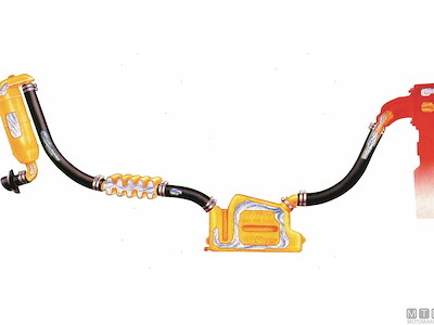 Marmitta con raccordo girevole e trappola per l'acqua di scarico. Impedisce all'acqua di rifluire lungo la linea di scarico verso il motore quando viene spento.Capacità: 4,25 litri.