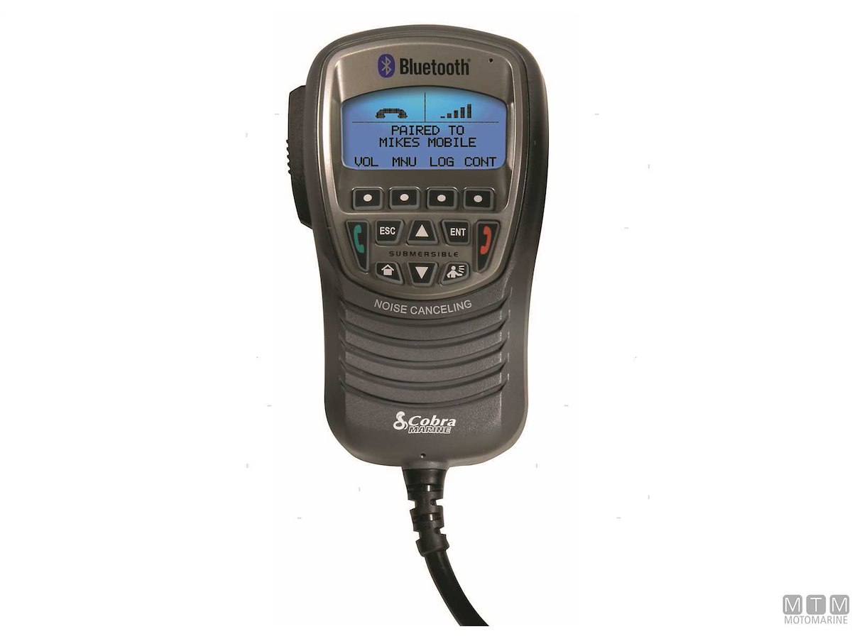 Microfono Cobra Marine F300 BT EU impermeabile IP68 progettato per connettersi al sistema audio di bordo oppure allo smartphone e facilitare le comunicazioni. Tramite Bluetooth si connette al telefono e gestisce tutte le funzionalità di chiamata filtrando i rumori di sottofondo normalmente presenti a bordo.Inoltre permette di collegare lo smartphone all'impianto stereo di bordo per riproduzione audio di musica oppure per ascoltare l'interlocutore.Completo di supporto microfono, presa alimentazione a paratia, cavo alimentazione e connettore USB.
