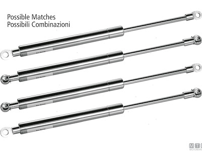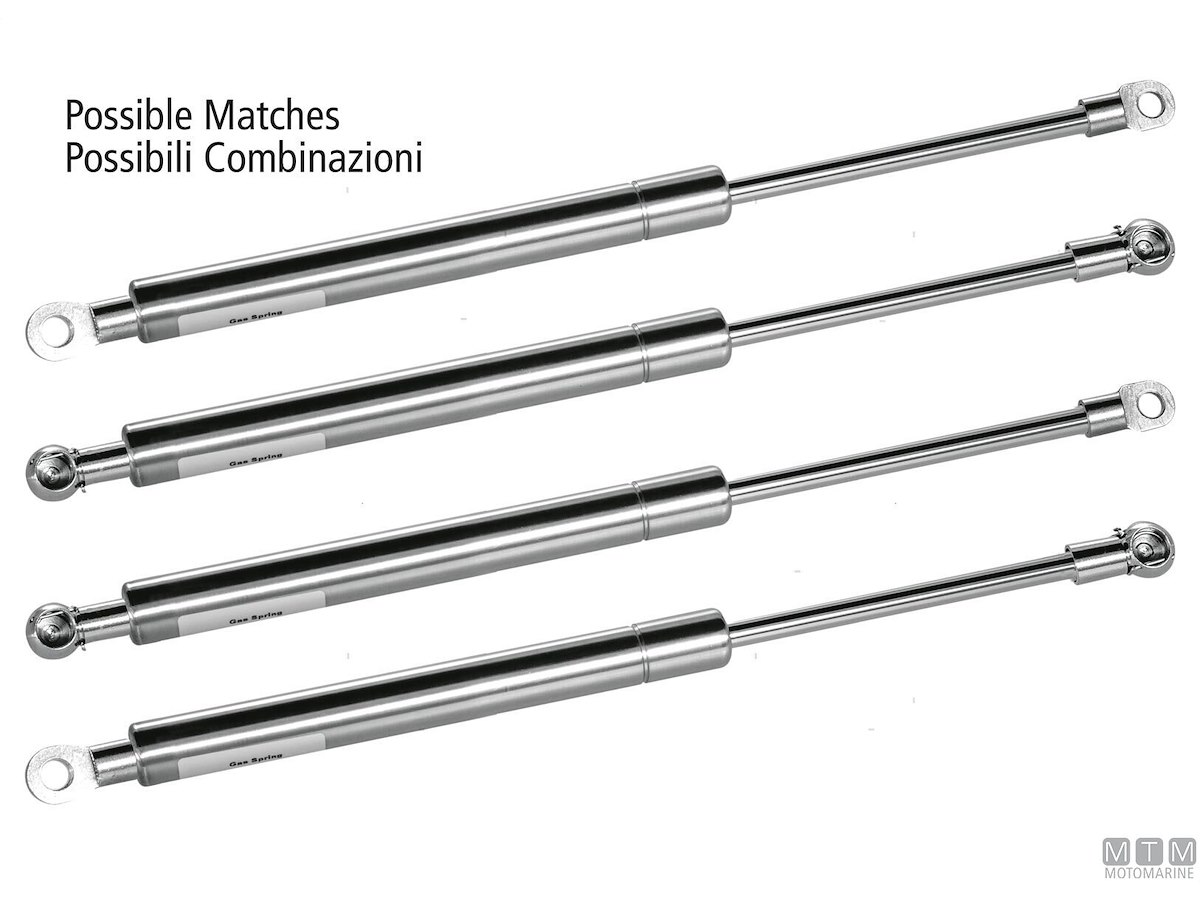 Molle a gas Springlift in Acciaio Inox 316 per aprire e chiudere in maniera controllata portelli, gavoni, osteriggi, oblò e vani motore. Da completare con terminali a scelta da avvitare alle estremità filettate. Terminali a occhio da 8mm: filettatura M6 o M8. Terminali a sfera da 10mm: filettatura M6 o M8. L aperto = misura della molla aperta calcolata al centroforo dei terminali (venduti a parte) L chiuso = misura della molla chiusa calcolata al centroforo dei terminali (venduti a parte)