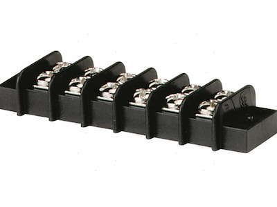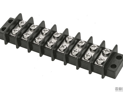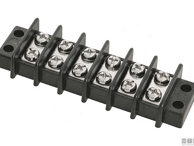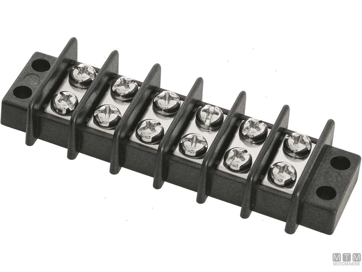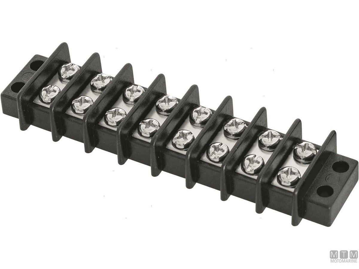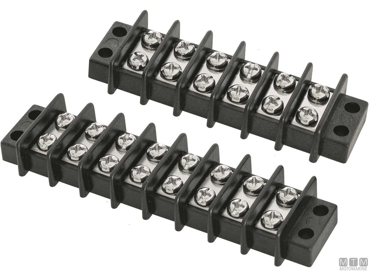 Morsettiera isolata con morsetti in Acciaio 201 nichelato. Ogni paio di viti costituiscono un circuito isolato.
