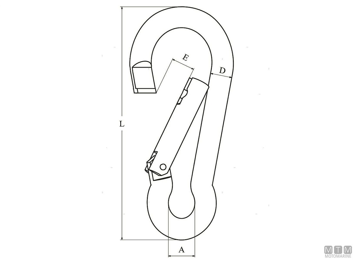 Moschettone Standard in Acciaio Inox AISI 316 con aggancio Easy Catch.La superficie è continua e priva di spigoli, impedendo l’aggancio accidentale di corde o fettucce.