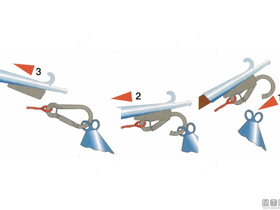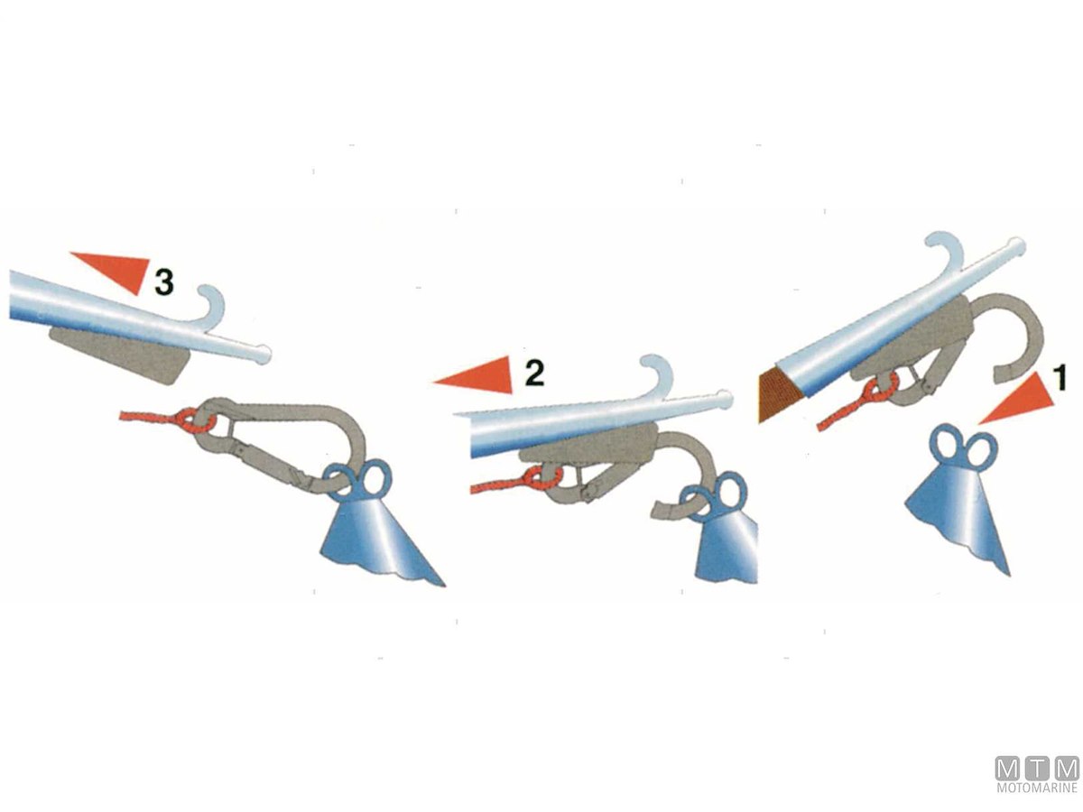 Moschettone da ormeggio in Acciaio Inox completo di piastra d'attacco a baionetta per mezzi marinai. Si aggancia all'occhio della boa d'ormeggio, poi si ritira il mezzo marinaio lasciando il moschettone con la cima agganciato alla boa.