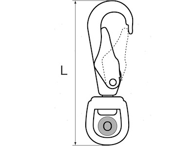 Moschettone piatto in Acciaio Inox AISI 316 con occhio girevole.