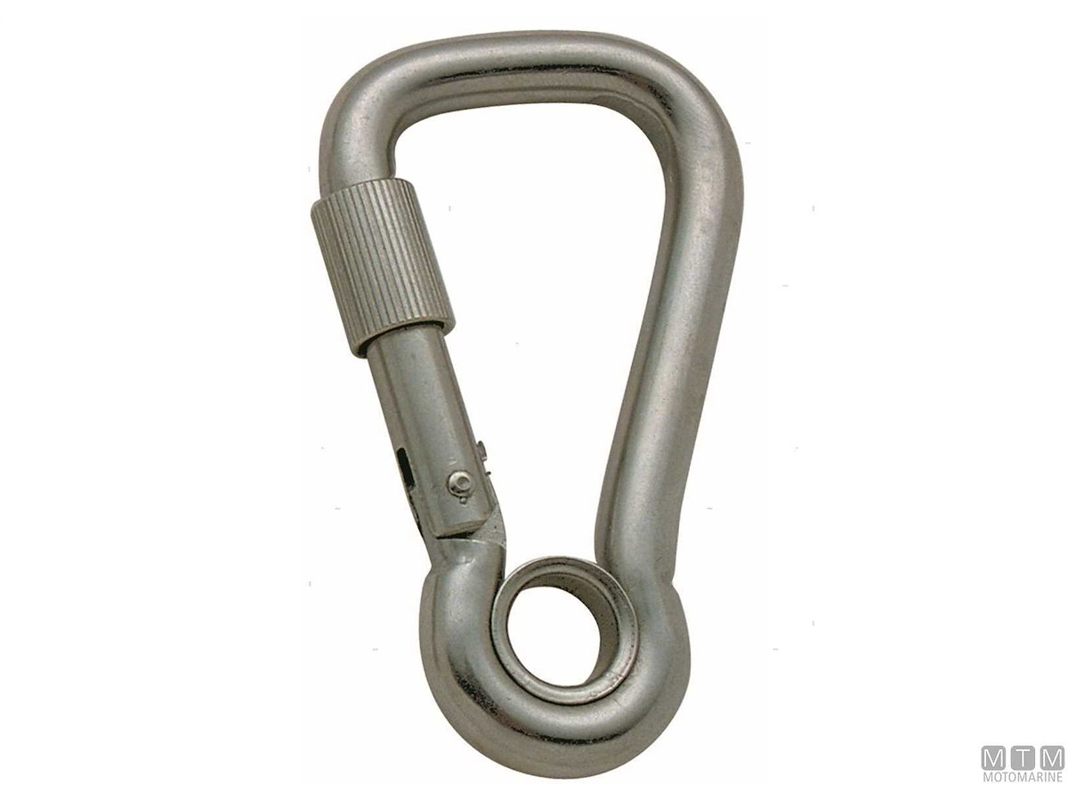 Moschettone in Acciaio Inox AISI 316 con grande apertura, ghiera di sicurezza e occhio.