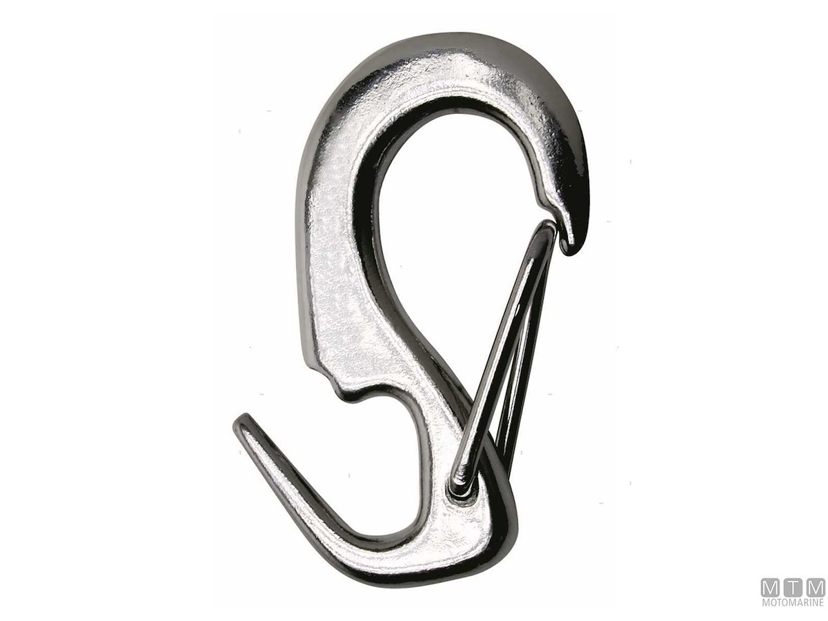 Moschettone da fiocco aperto in Acciaio Inox AISI 316, utilizzato per l'attacco del fiocco su golfare di prua. Viene cucito su cinghia oppure piombato su cima, poi ribattuto.