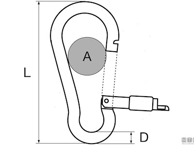 Moschettone in Acciaio Inox AISI 316 con apertura in fuori e ghiera di sicurezza. Sistema di aggancio antigrip. Non impiglia le cime.