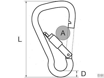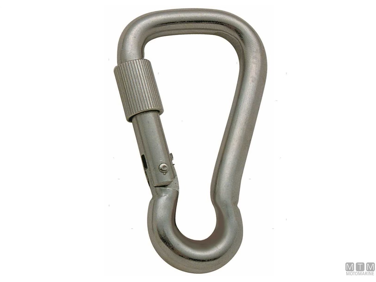 Moschettone in Acciaio Inox AISI 316 con grande apertura e ghiera di sicurezza.