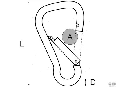 Moschettone in Acciaio Inox AISI 316 tipo largo con grande apertura.