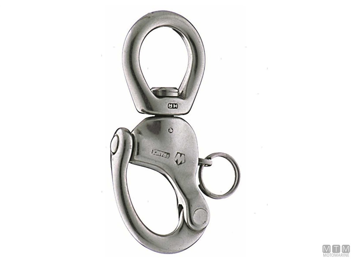 Moschettone sgancio rapido Wichard in Acciaio Inox AISI 316 forgiato con occhio girevole. Testato e garantito nel carico di rottura (BL).