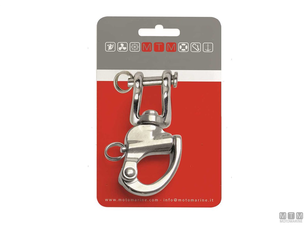 Moschettone sgancio rapido con grillo girevole in Acciaio Inox AISI 316 di grado superiore. Controllo e finitura per il duro uso in mare. Fornito su elegante Card da esposizione. Testato e garantito nel carico di lavoro (WL). Il carico di rottura (BL) è 4 volte il carico di lavoro.