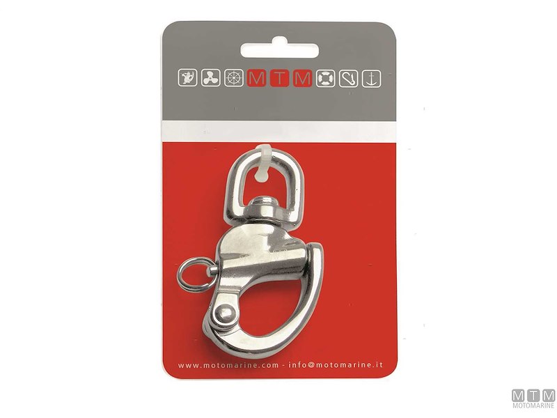 Moschettone girevole da spi in Acciaio Inox 316 di grado superiore. Controllo e finitura per il duro uso in mare. Fornito su elegante Card da esposizione. Testato e garantito nel carico di lavoro (WL). Il carico di rottura (BL) è 4 volte il carico di lavoro.