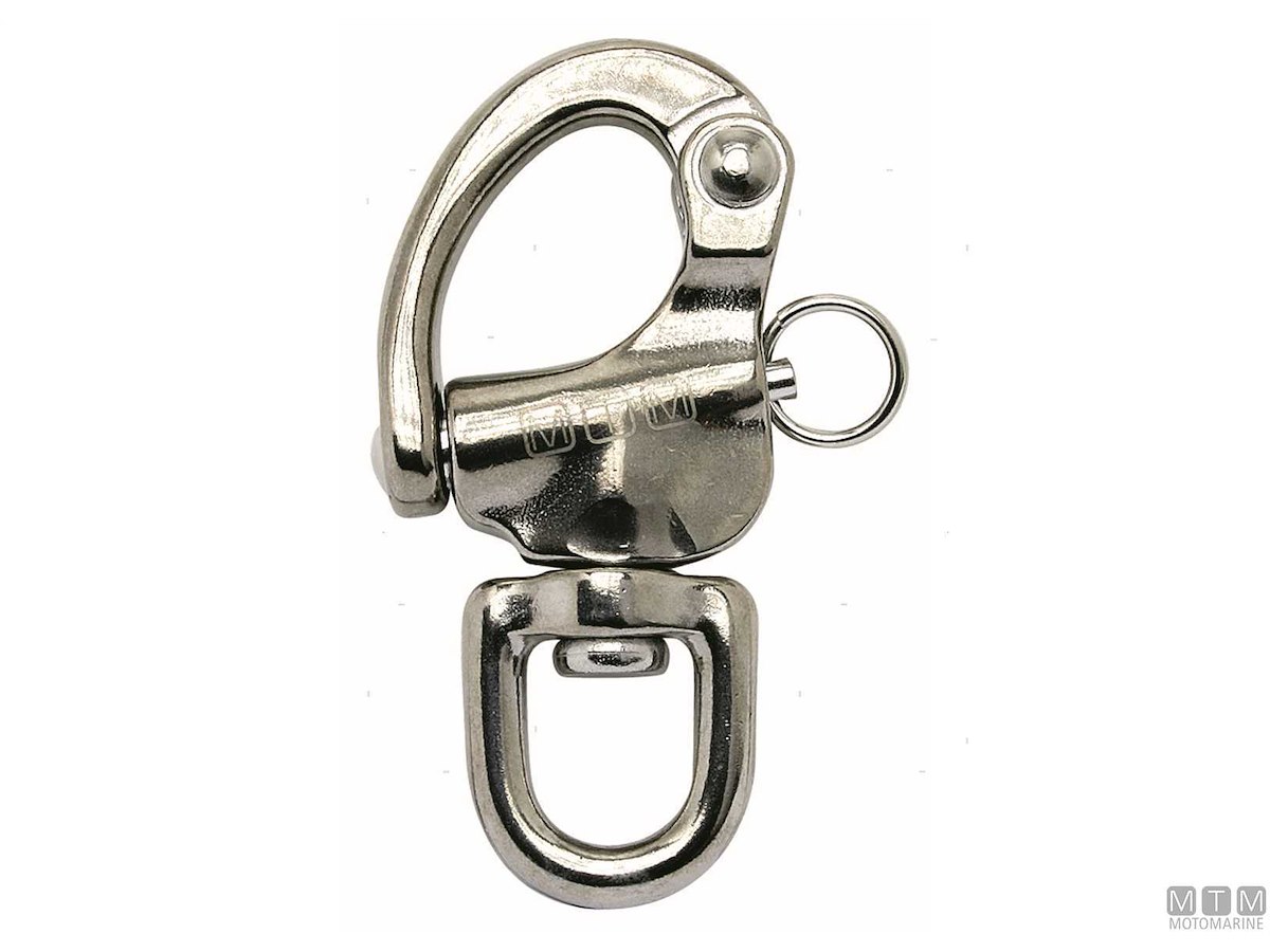 Moschettone girevole sgancio rapido in Acciaio Inox AISI 316 di grado superiore. Controllo e finitura per il duro uso in mare. Fornito su elegante Card da esposizione. Testato e garantito nel carico di lavoro (WL). Il carico di rottura (BL) è 4 volte il carico di lavoro.