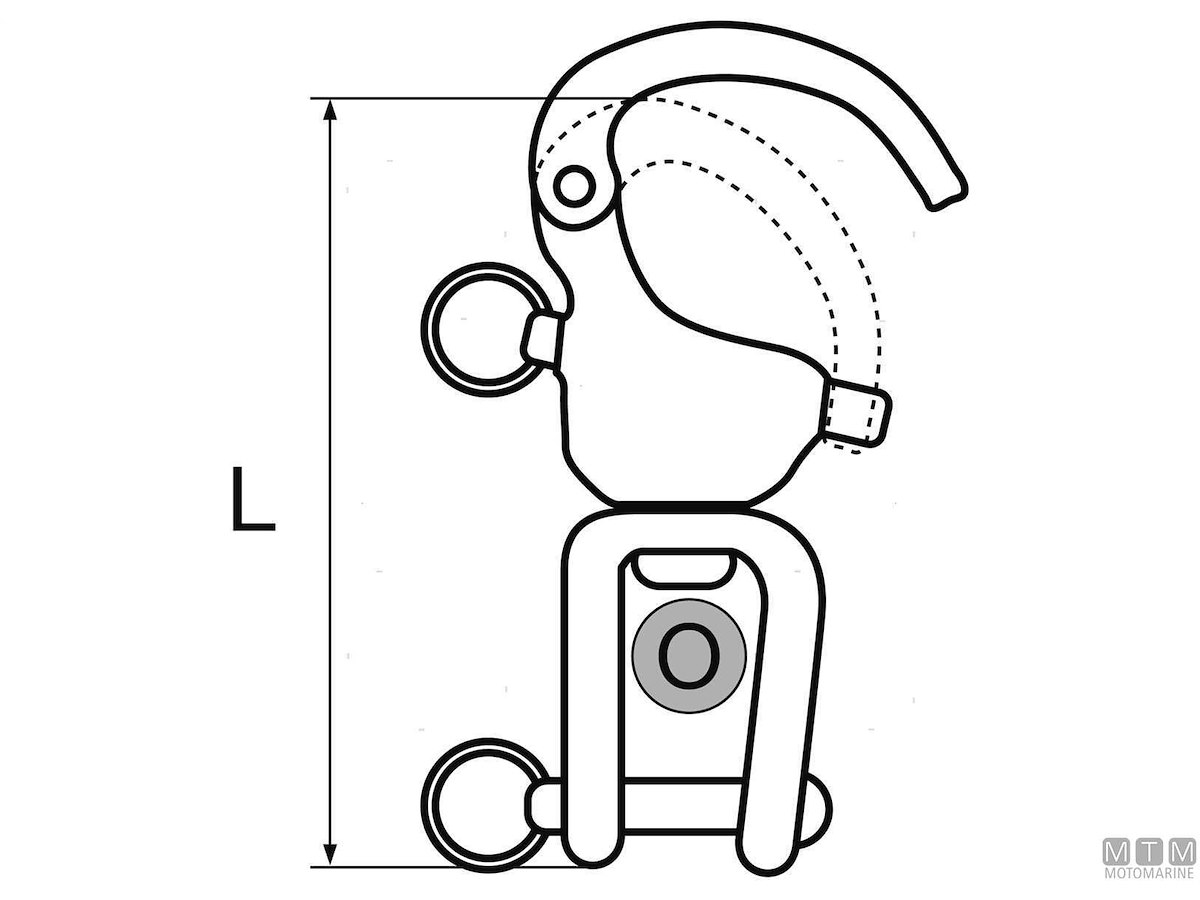 Moschettone sgancio rapido in Acciaio Inox AISI 316 con grillo girevole, utilizzato per le drizze dello spinnaker o del fiocco. Nel caso di drizze piombate, l'asse del grillo può essere facilmente sostituito se usurato.