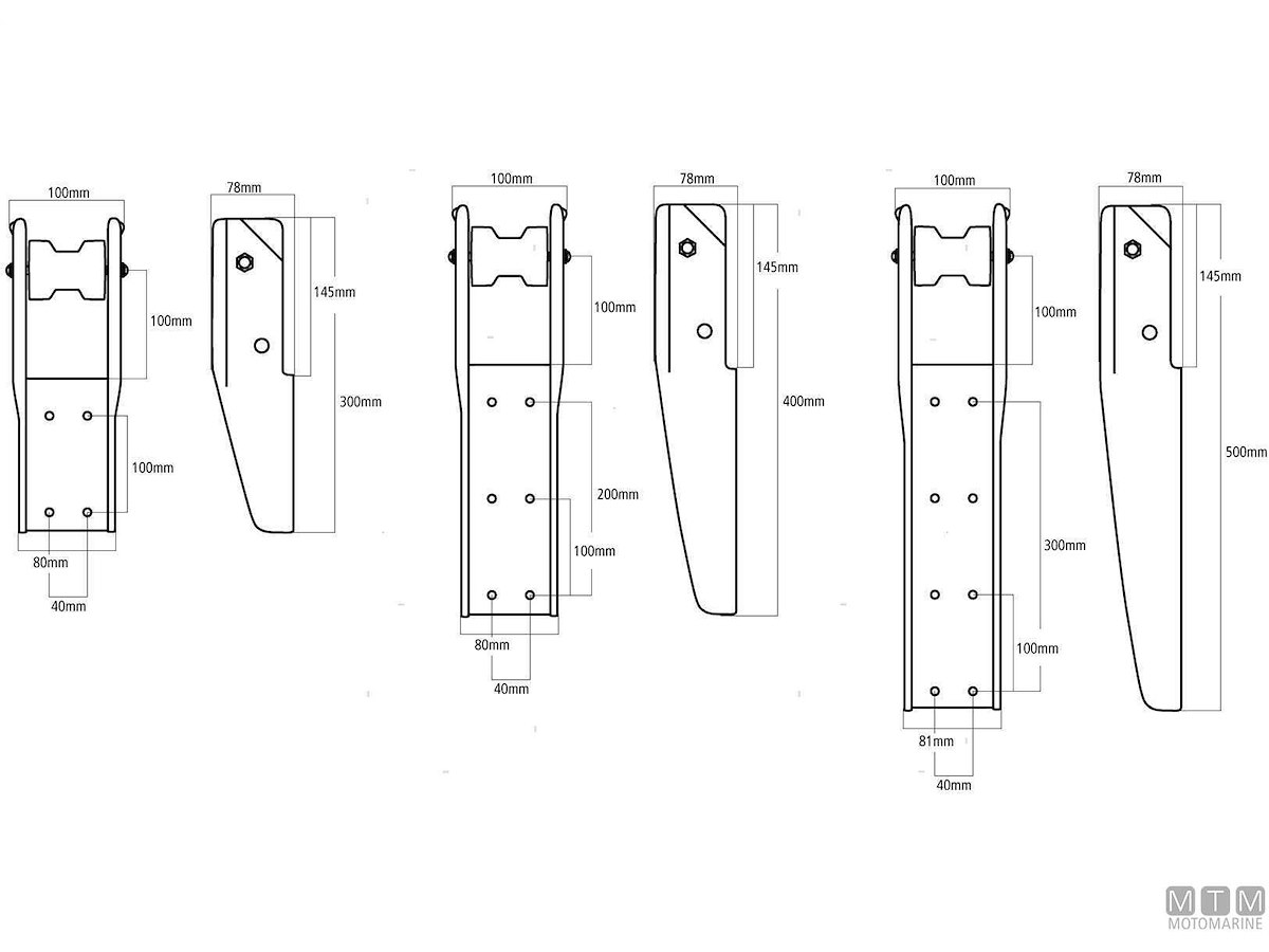 Musoni di prua fissi in Acciaio Inox.  L= Lunghezza  W= Larghezza