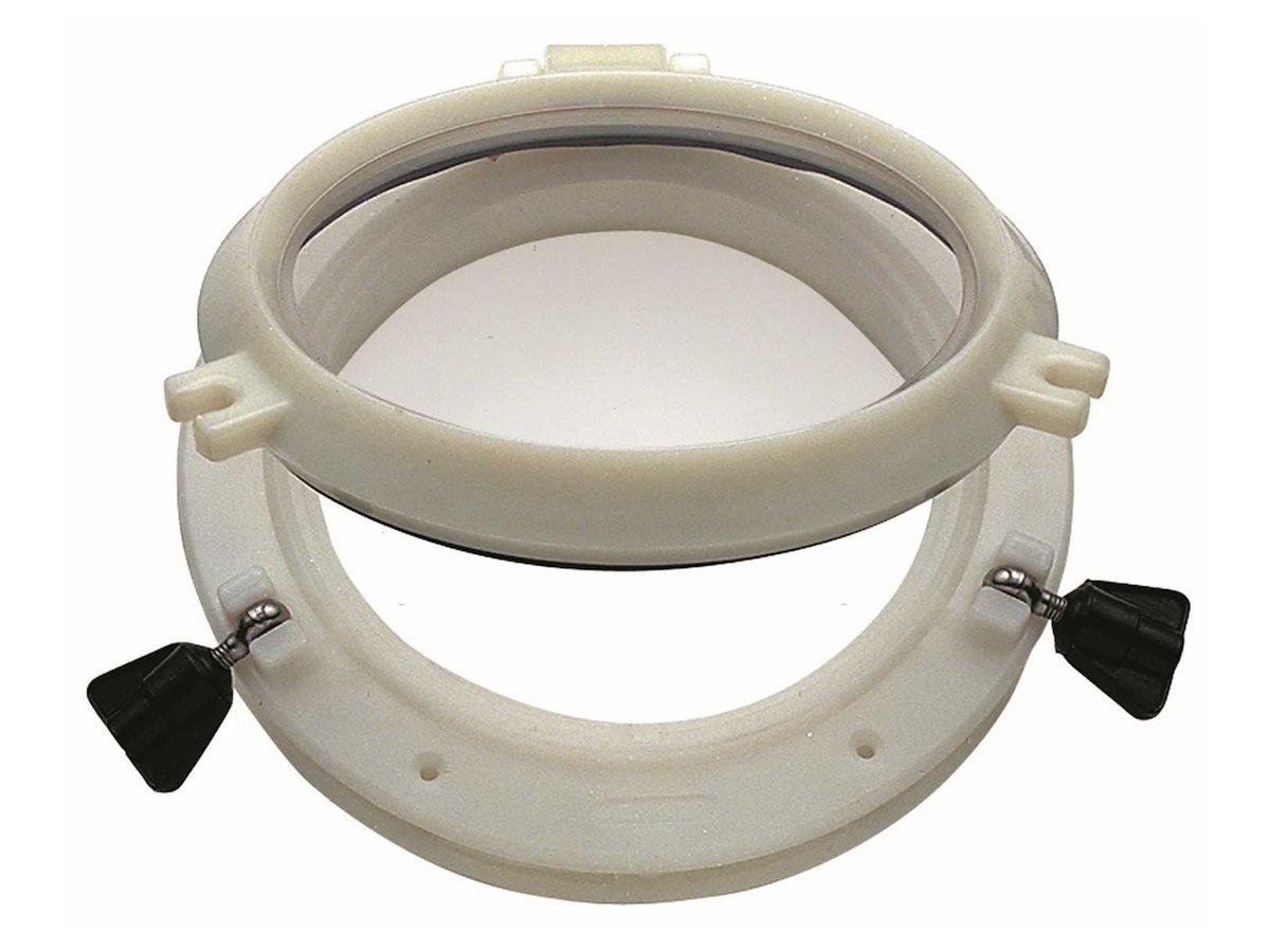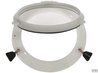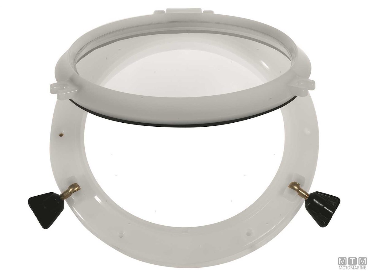 Oblò tondi MTM con cornice in Nylon puro e vetro in Acrilico.Completi di controcornice. Viti non incluse. H Collo 30 mm.Certificati CE EN ISO12216.
