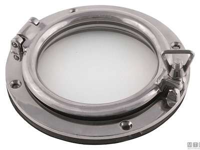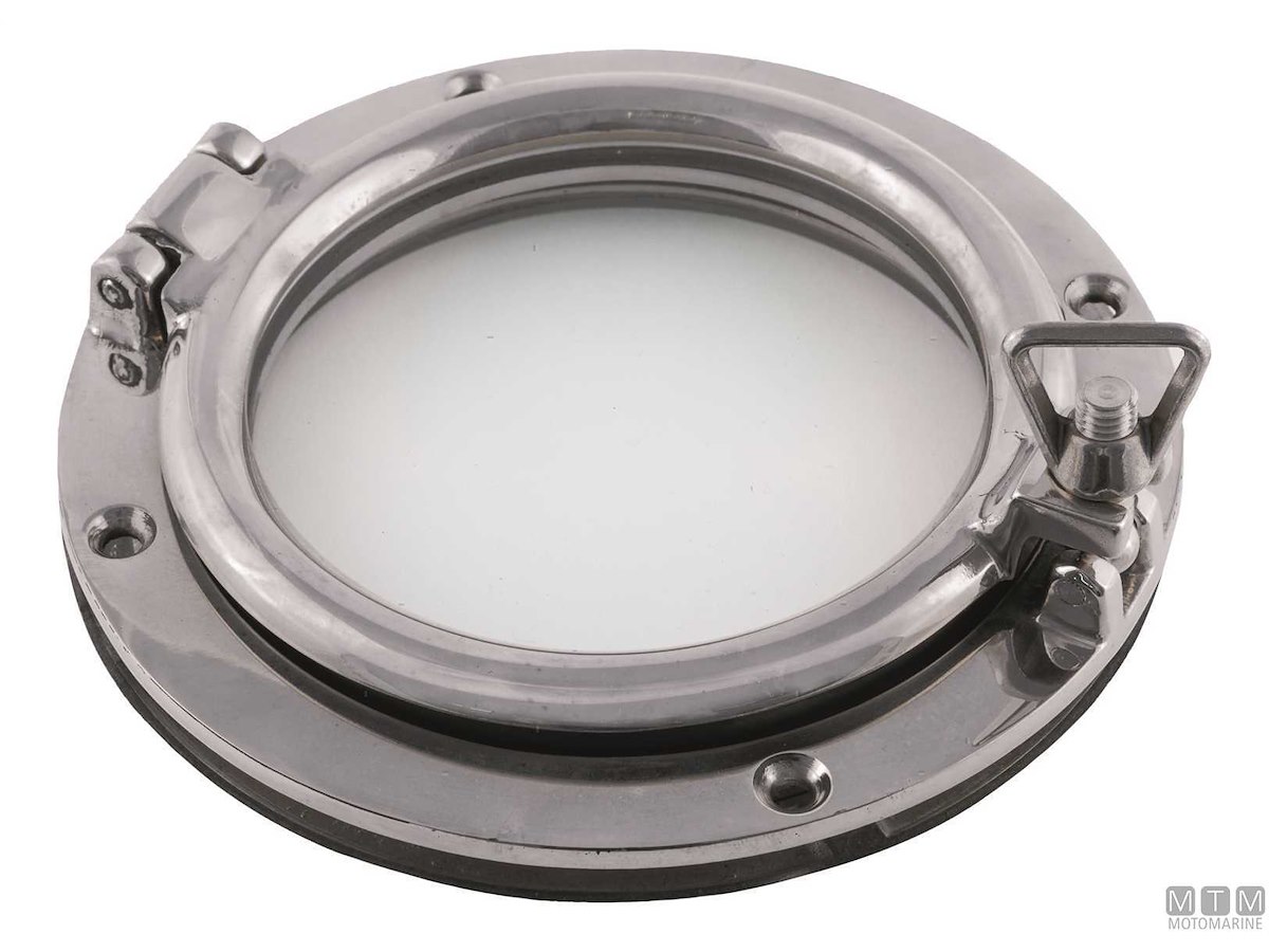 Oblò tondi profilo basso in Ottone Cromato completi di controcornice. Altezza collo 12 mm.