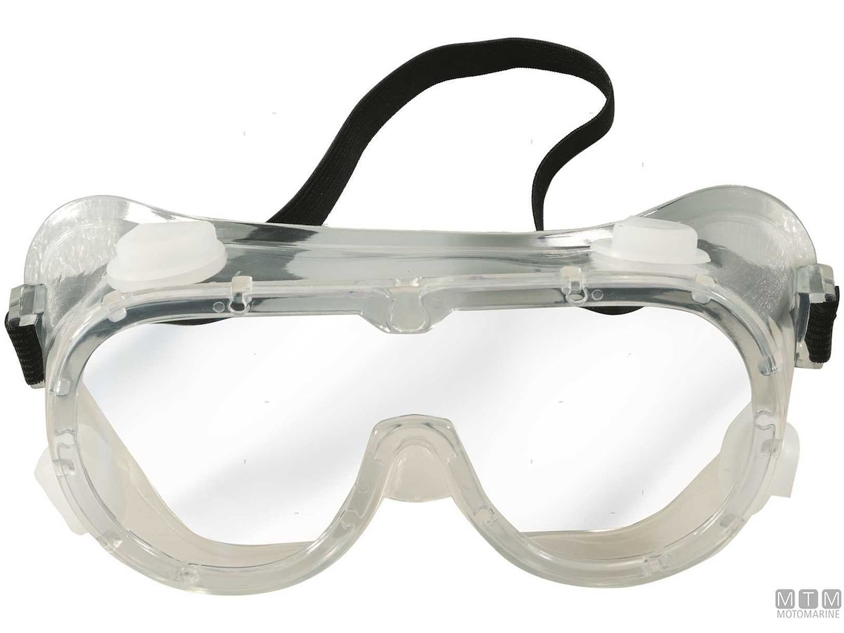 Gli occhiali sono completi di ripari laterali, laccio regolabile e valvole antiappannamento.